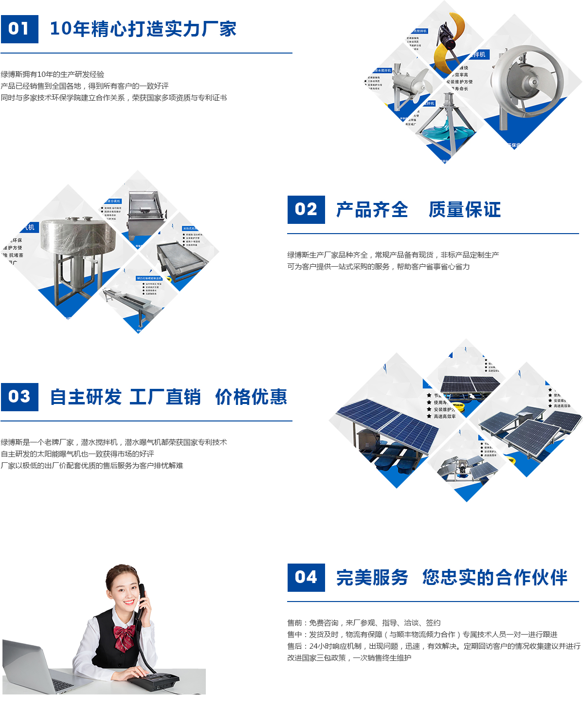 • 綠博斯主營,潛水攪拌機,潛水曝氣機、機械格柵等非標產品